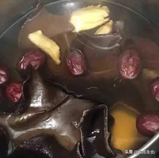 食材:干木耳1小把、红枣4-5颗、生姜2片、清水适量